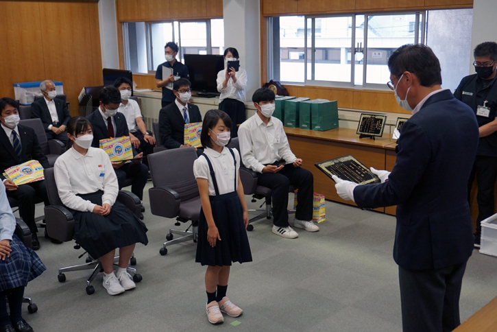 各選手は成績紹介とともに「世界で戦える選手になるため練習を積みたい」「表彰式がゴールではなく、スタート。世界大会出場を見据えている」などと抱負を述べた。徳永繁樹市長は桜井漆器でできた表彰状を各選手に手渡し「さらなる高みを目指して頑張ってほしい」とエールを送った。